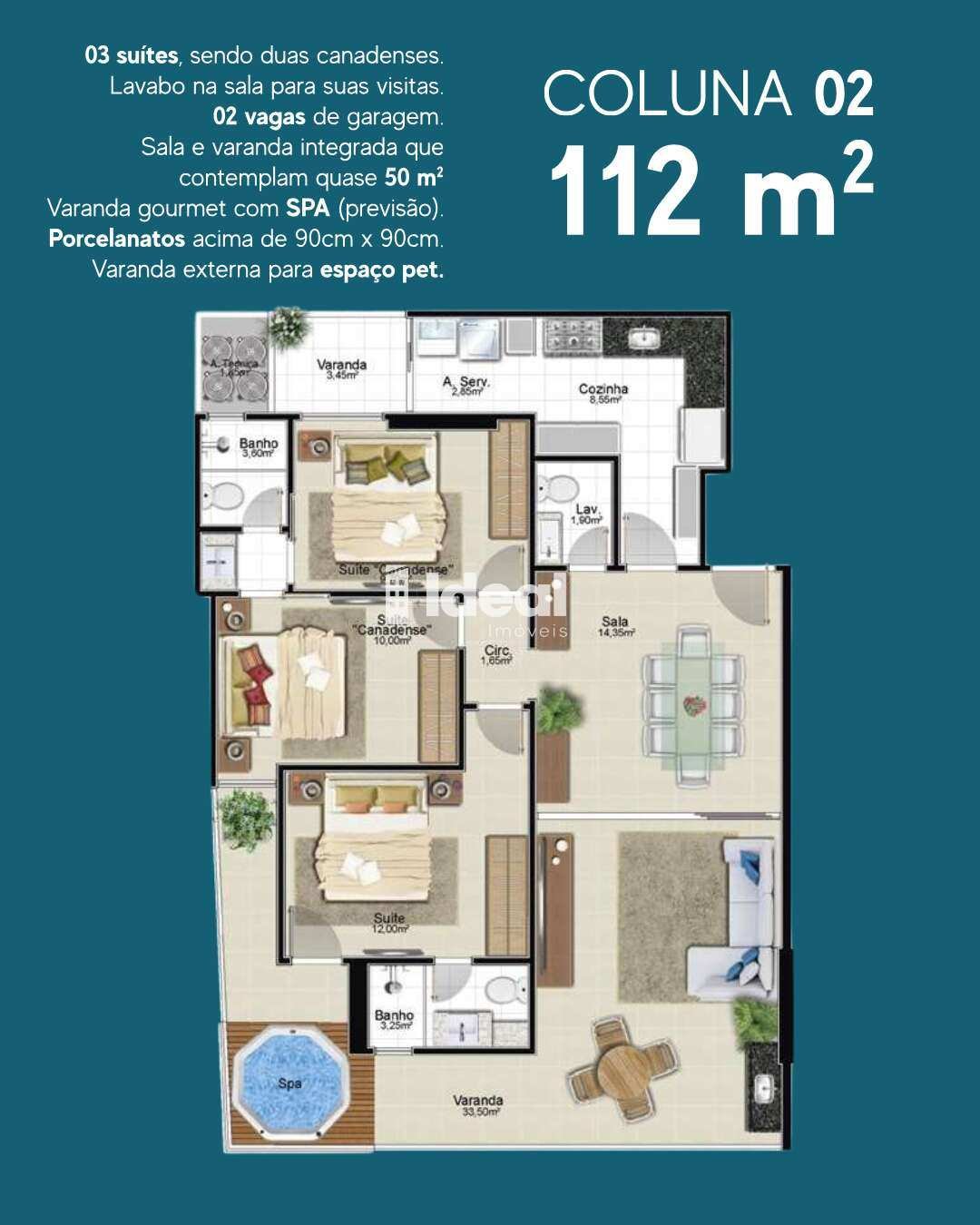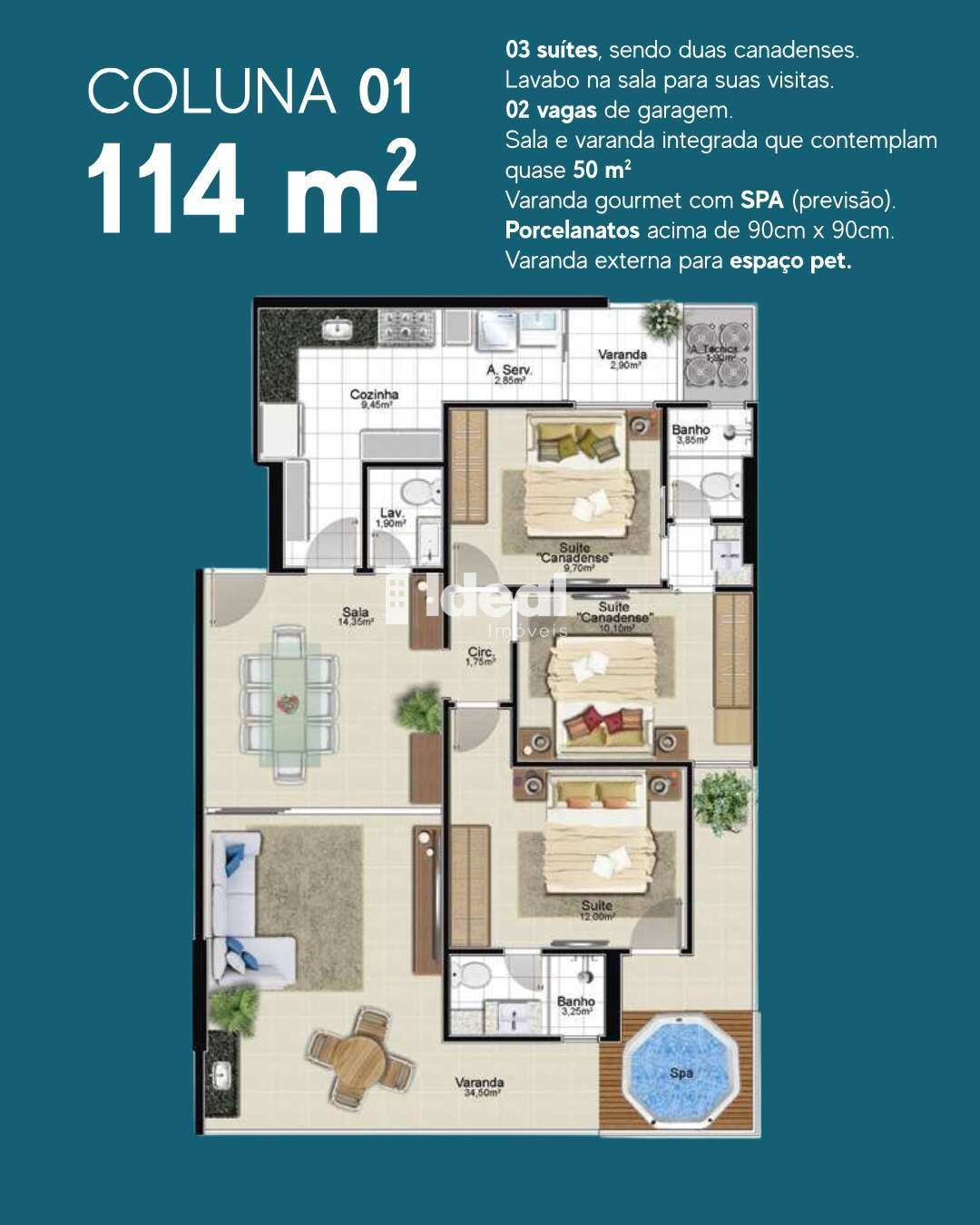 ? Apartamentos espaçosos de 112m² e 114m²:
